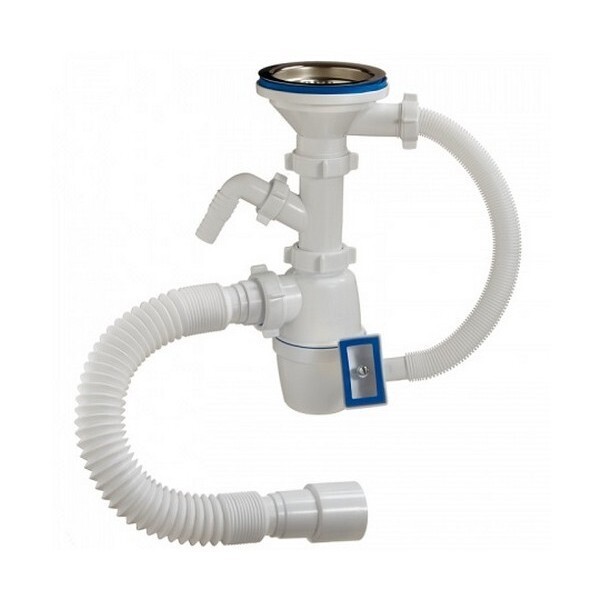 Сифон пластиковый с переливом 3 1/2" KROMRUS для мойки из нержавеющей стали. Сифон для мойки ∅3½", с выпуском стоп-вентиль, с гофрированной трубой, отвод для посудомоечной машины, вертикальный перелив.