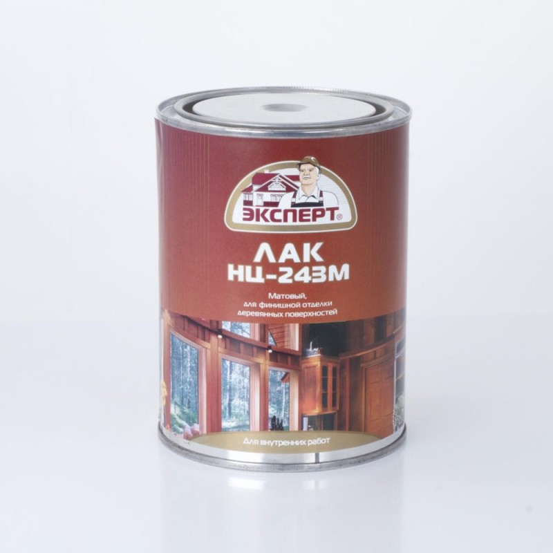 ЭКСПЕРТ Лак НЦ 243 М – Быстросохнущий матовый лак для финишной отделки деревянных поверхностейМатовый нитролак для финишной отделки деревянных поверхностей внутри помещений. Лак НЦ применяется для отделки и защиты мебели, элементов интерьера, а также для отделки декоративной и текстурной бумаги и картона.СВОЙСТВА И ОБЛАСТЬ ПРИМЕНЕНИЯМатовый, бесцветный, быстросохнущий нитроцеллюлозный лак для внутренних работ. Предназначен для финишной отделки и защиты мебели, деревянных изделий и элементов интерьера, стеновых панелей, ДВП, ДСП, а также для отделки декоративной и текстурной бумаги и картона.ЦВЕТБесцветный СТЕПЕНЬ БЛЕСКАМатовая РАСХОД85-105 г на 1 кв. м ОСНОВА ДЛЯ НАНЕСЕНИЯДревесина, ДСП, ДВП СРОК ГОДНОСТИ12 месяцев ФАСОВКА0.7кг, 1.7кг