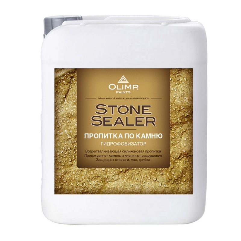 ОЛИМП Пропитка для камня – Гидрофобизатор для защиты камняПРИМЕНЕНИЕОЛИМП Пропитка для камня — это бесцветная силиконовая водоотталкивающая пропитка для защиты минеральных поверхностей от атмосферного воздействия и влаги. Применяется для отделки поверхностей из:-природного камня-искусственного камня-кирпича-клинкерного кирпича-натуральной черепицы-цементно-волокнистых плит-бетона всех марокСВОЙСТВАПропитка для камня (гидрофобизатор) ОЛИМП при нанесении на пористые поверхности глубоко проникает в обрабатываемый материал, блокируя поры и капилляры. Гидрофобизатор не меняет цвет основания и сохраняет его естественную красоту. Не образует на поверхности пленки и не препятствует воздухообмену. Увеличивает морозостойкость и предотвращает образование грибка и солевых пятен. Пропитка для камня (гидрофобизатор) ОЛИМП является финишным покрытием, не требующим нанесения дополнительных отделочных материалов. Допускается последующая окраска обработанной поверхности.ПОДГОТОВКА ПОВЕРХНОСТИПоверхность должна быть сухой, очищенной от грязи, пыли и масляных загрязнений. При необходимости следы извести, цемента и штукатурки удалить Смывкой цемента ОЛИМП. Выступившие на поверхность солевые пятна удалить при помощи Смывки высолов ОЛИМП.НАНЕСЕНИЕПропитка для камня (гидрофобизатор) ОЛИМП готова к применению. Перед применением гидрофобизатор тщательно перемешать. Наносить гидрофобизатор в один слой кистью или валиком. При обработке сильно впитывающих поверхностей рекомендуется разбавить водой в соотношении 1:1 по объему. Не работать при температуре ниже +5°С.ВЫСЫХАНИЕ ПОВЕРХНОСТИПри температуре воздуха +20°С и нормальной влажности воздуха время высыхания поверхности от пыли 1-2 часа.РАСХОДПримерно 5-7 кв. м. /литр в один слой по гладкой, подготовленной поверхности.РАСТВОРИТЕЛЬИнструменты сразу после окончания работ промыть водой.СОСТАВСиликоновая эмульсия, антисептик, вода.ХРАНЕНИЕ И ТРАНСПОРТИРОВКАГидрофобизатор хранить и перевозить в герметично закрытой таре при температуре от +5°C до +40°С. Не замораживать! Не подвергать воздействию прямых солнечных лучей. Не складировать близко от работающих нагревательных элементов.СРОК ГОДНОСТИСрок годности при соблюдении условий хранения — до даты, указанной на упаковке (12 месяцев).УТИЛИЗАЦИЯОстатки продукта не сливать в канализацию, водоемы. Использованную упаковку с полностью высохшими остатками продукта утилизировать как бытовой или строительный мусор.МЕРЫ ПРЕДОСТОРОЖНОСТИПропитка имеет щелочную реакцию. Применение распылителя нежелательно. При применении необходимо использовать защитные очки, резиновые перчатки и фартук. При попадании в глаза и на кожу промыть большим количеством воды. Если неприятные проявления (жжение, покраснение) остаются длительное время – обратиться к врачу. Беречь от детей!