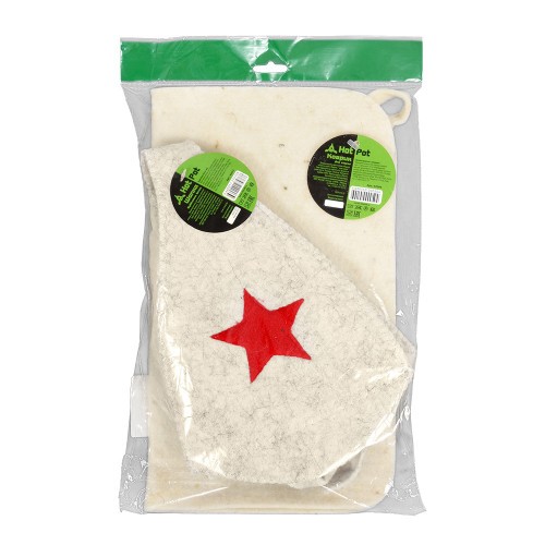 Набор из двух предметов (Шапка Будёновка белая, коврик) - предназначен для использования в бане или сауне. Коврик убережет от ожогов в сауне, шапочка предотвратит тепловой удар и не позволит высокой температуре и влажности испортить волосы. Оригинальный дизайн шапки для бани создаст веселое настроение.Материал - войлок.