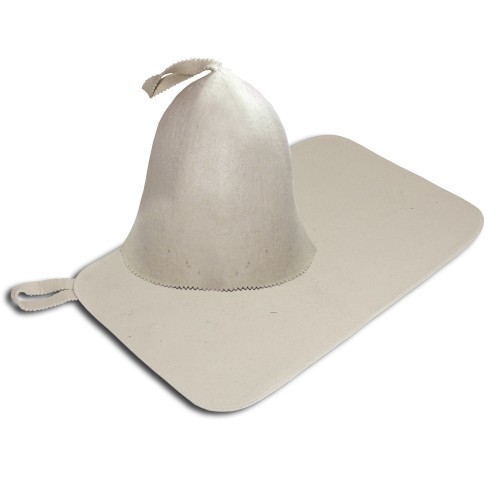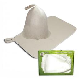 Набор из двух предметов (Шапка Классик, коврик белый) арт.41103 - состоит из шапки и коврика выполненных из натурального материла войлока. Шапка из набора защитит голову от перегрева и хорошо впитывает влагу. Коврик предохранит Ваше тело от горячего полка в бане. Комплект упакован в подарочную коробку и станет отличным подарком для для любителей бани и сауны.