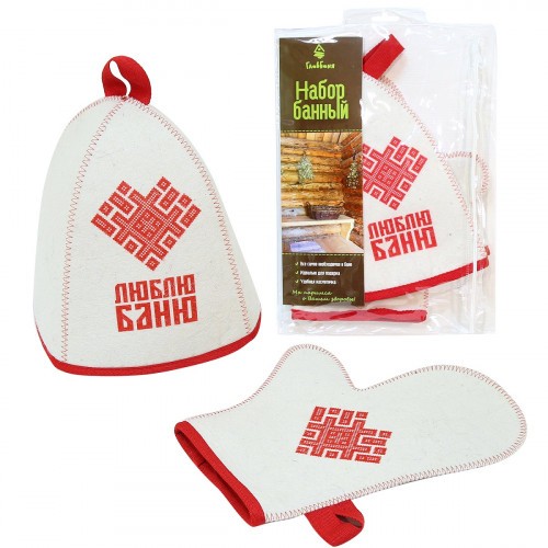 Комплект банный войлочный Люблю баню(шапка, рукавица) Б153