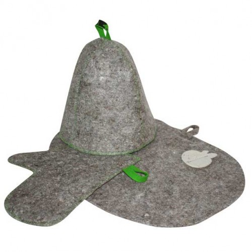 Банный набор (шапка, рукавица, коврик) войлок серый Б16-1