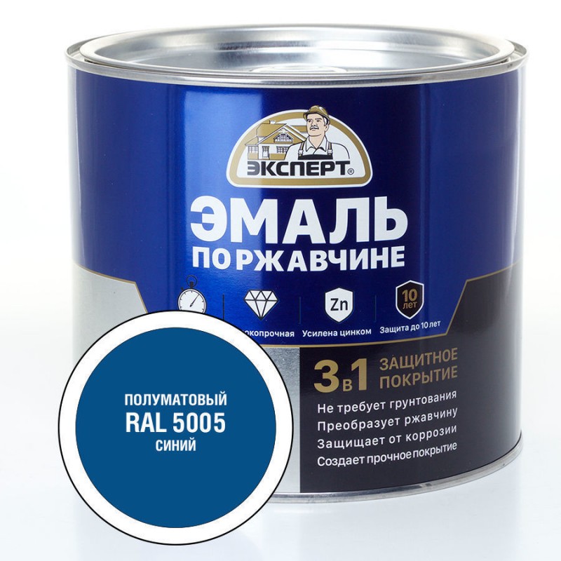 ЭКСПЕРТ Эмаль по ржав.3в1 синий RAL 5005 полумат.(1,8 кг; 6 шт)