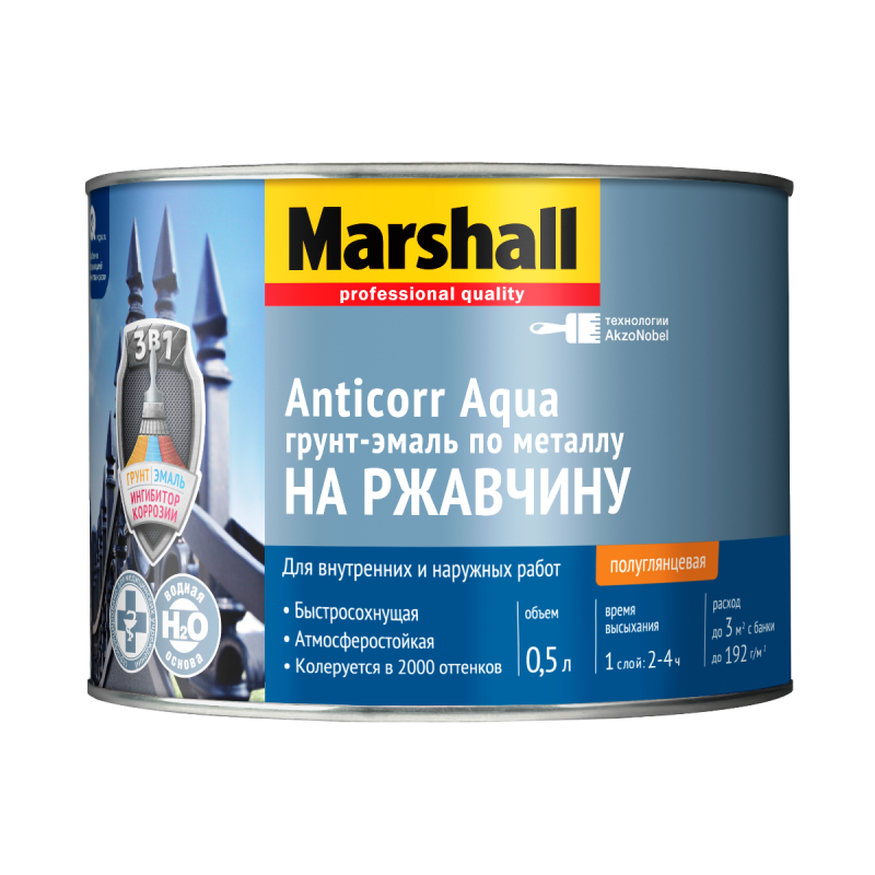 Грунт-эмаль 3в1 MARSHALL Anticorr Aqua 0,5л база для насыщ.тонов BC