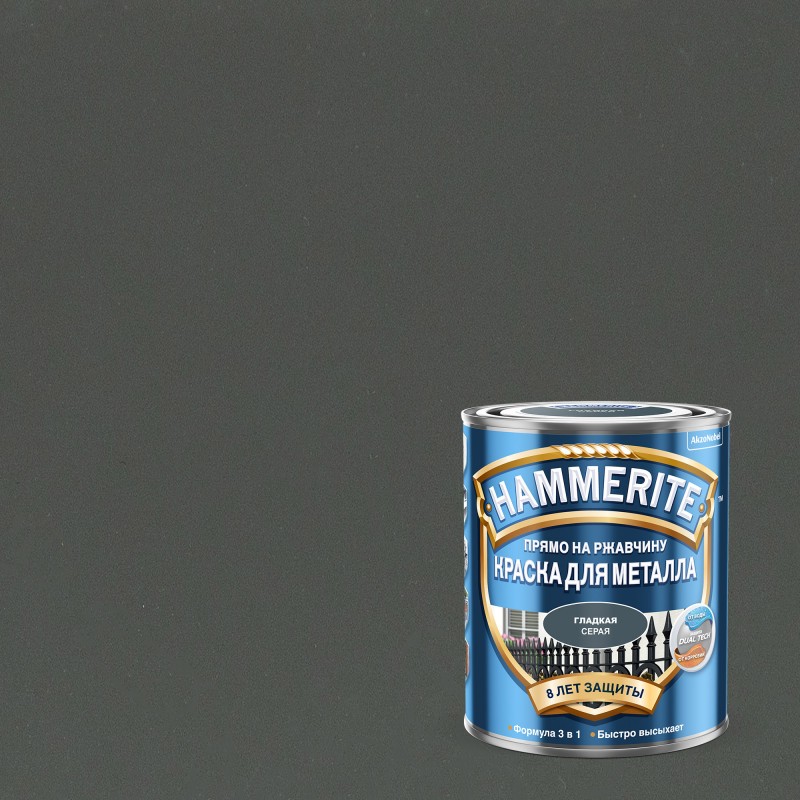 Краска по металлу HAMMERITE (хаммерайт) гладкая СЕРАЯ 0,75л