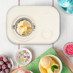 • Комплектация В комплектацию с устройством входят: лопатка для смешивания, литровое ведёрко с ручкой, мерный стаканчик и лопатка-скребок для мороженого.