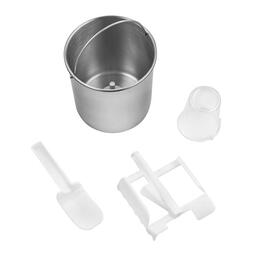 КомплектацияЛопатка для смешивания, 1,5 литровое ведёрко, мерный стаканчик и лопатка для мороженого.