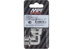Угольник 1/2" в/н с ограничителем MPF ИС.072249 предназначен для соединения элементов трубопровода под углом 90° в системах холодного и горячего водоснабжения и отопления. Благодаря наличию ограничителя на наружной резьбе данного фитинга создается дополнительное препятствие смещению и выдавливанию уплотнительных материалов при закручивании резьбы. Для облегчения процесса монтажа на бортике наружной резьбы имеется площадка под гаечный или разводной ключ