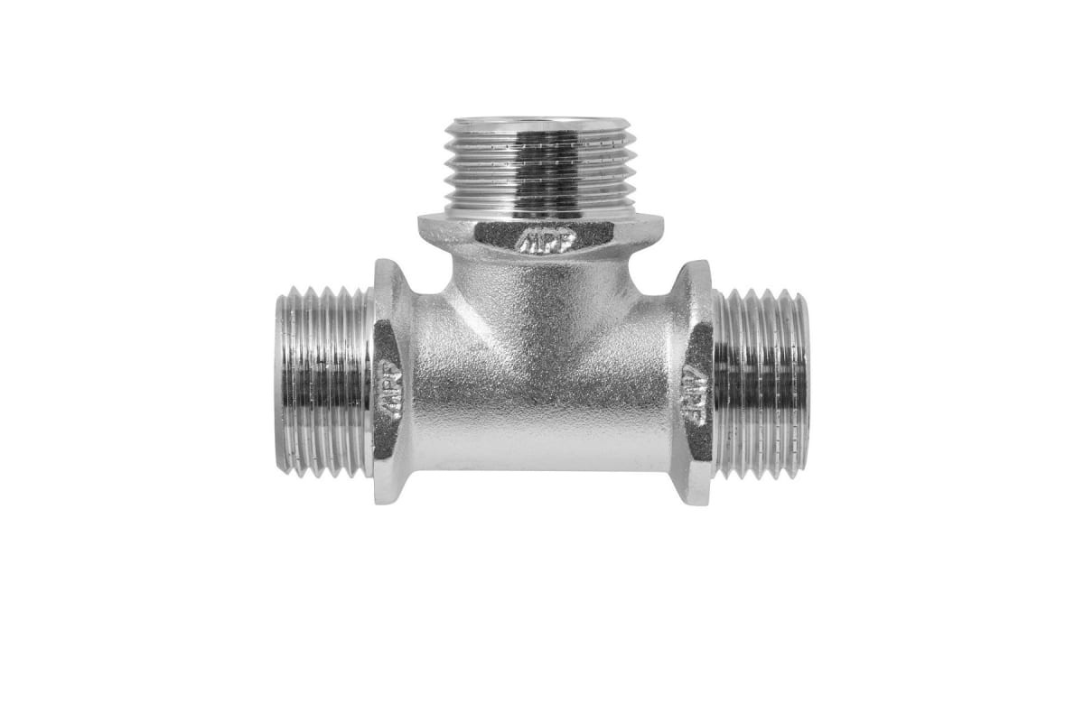 Тройник 1/2" н/н/н с ограничителем MPF ИС.072231 служит для разветвления потоков трубопровода под прямым углом в системах холодного и горячего водоснабжения и отопления. Благодаря наличию ограничителя на наружной резьбе данного фитинга создается дополнительное препятствие смещению и выдавливанию уплотнительных материалов при закручивании резьбы. Для облегчения процесса монтажа на бортике наружной резьбы имеется площадка под гаечный или разводной ключ