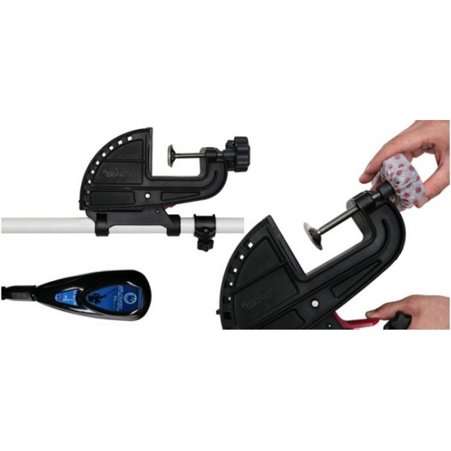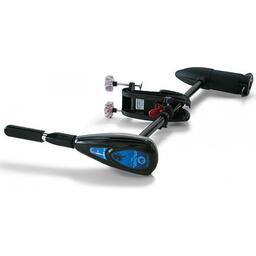 Верхний блок управления - герметичный пластиковый блок и рукоять управления. С помощью ручки осуществляется управление направлением и скоростью движения лодки и направлением вращения винта. Буква «T» в названии модели - ручка телескопическая. Это достаточно удобно – при необходимости ручка выдвигается. Буква «G» показывает наличие светодиодного индикатора разряда батареи, который упрощает работу с мотором.