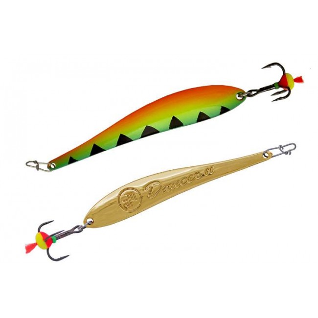 Название Dancer («Танцор») говорит само за себя. Игра блесны в своем роде уникальна, при сбросе «осыпается» довольно с широкой амплитудой, зигзагообразно, как бы танцуя, практически без отклонения от вертикали. Форма зимней вертикальной блесны Dancer веретенообразная, ассиметричная, выгнутая по своей оси вдоль тела и немного по поперечному сечению. В действительно Dancer напоминает маленькую уклеечку. Колебания блесны не интенсивные, довольно плавные. При тестовых испытаниях модели, блесна отлично отработала по судаку, окуню и щуке.