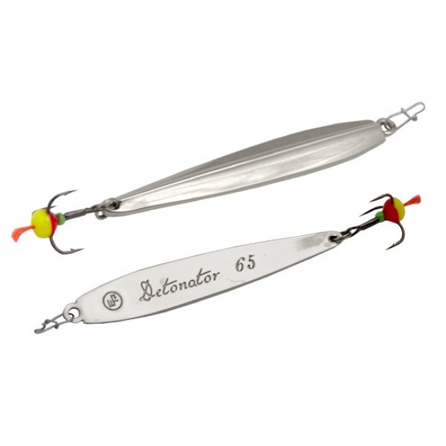 Хорошая поисковая блесна, собирающая рыбу с большого расстояния и обладающая ярко выраженной игрой. Приманка ECOPRO Detonator планирует из стороны в сторону, отклоняясь от вертикальной оси и переваливаясь с боку на бок. В конструкции приманки заложена возможность устанавливать крючок на оба конца блесны. После переустановки крючка приманка при падении начинает активнее «рыскать» из стороны в сторону.артикул - EPVJDT65S
