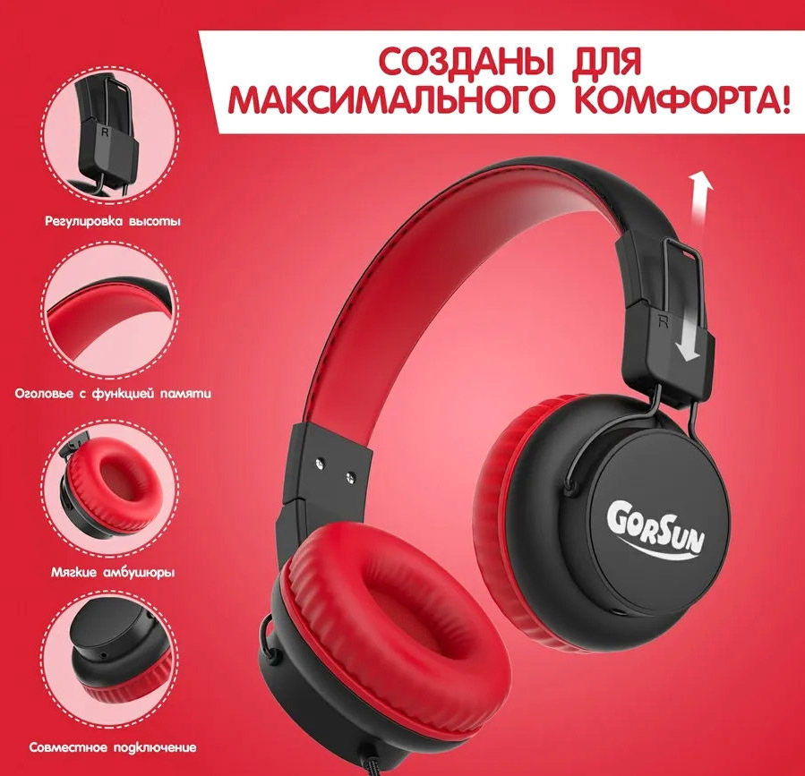 Наушники Gorsun GS-E92V (черный/красный)