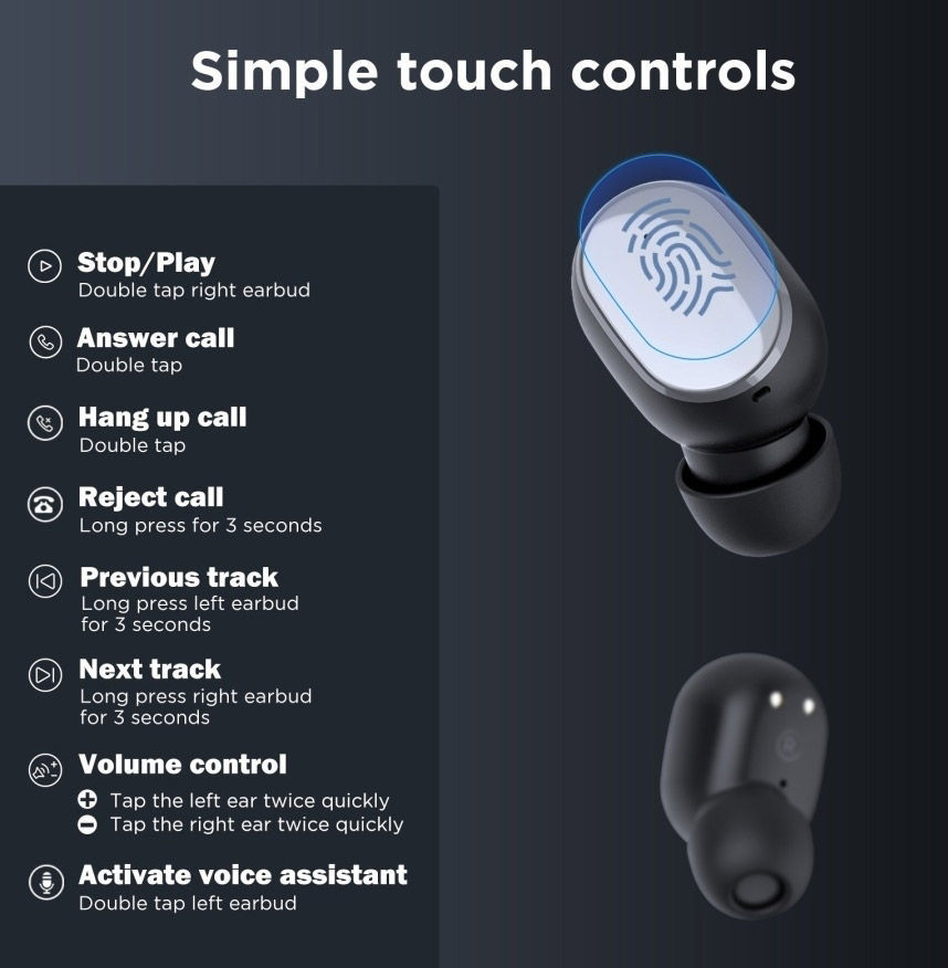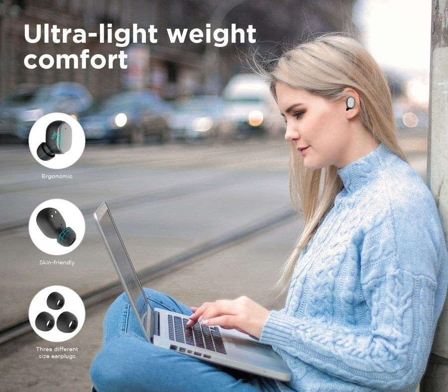 Наушники с микрофоном, беспроводные, внутриканальные, портативные, пыле- и влагозащита, максимальное время работы 8 ч.