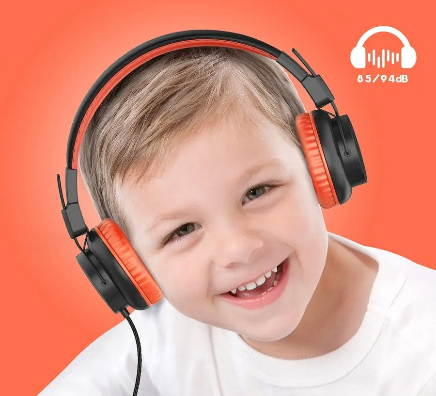 Наушники с микрофоном, проводные, накладные, для детей, портативные, складная конструкция, кабель 1.2 м.