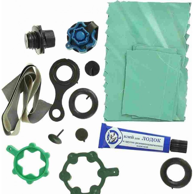 Бригада Молот.Ремонтный комплект для лодок из резины и прорезиненной ткани. В составе аптечки: Ткань прорезиненная, 150 мм х 100 мм - 2 шт Ткань прорезиненная, 100 мм х 100 мм - 5 шт Шов - лента проклеечная - 1 метр Клей резиновый, 50 мл - 1 шт Прокладка для клапана, резиновая - 1 шт Прокладка для клапана двойная, резиновая - 1 шт Кольцо стопорное для весел, резиновое - 2 шт Прокладка под корпус вентиля - 1 шт Лепесток клапана (тарелочка) - 2 шт Клапан УФА - 1 шт Клапан Ярославль (ЯРТ) - 1 штартикул - KUV-000011018