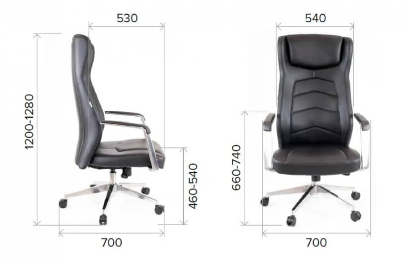 • Габариты: Высота изделия: 1200-1280 мм Ширина изделия: 700 мм Глубина изделия: 700 мм Высота спинки: 740 мм Высота сидения: 460-540 мм Высота подлокотников: 660-740 мм Ширина сидения: 540 мм Глубина сидения: 530 мм Диаметр базы: 700 мм