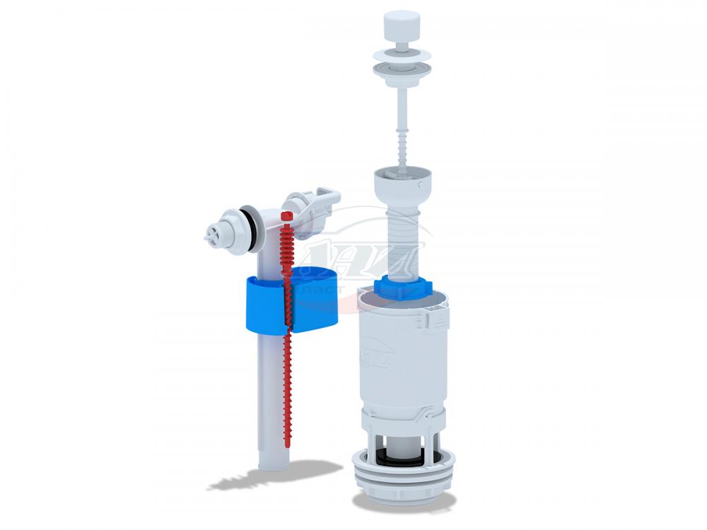 Набор для бачка унитаза. Наливной механизм с боковой подводкой и пластиковой резьбой диаметром 1/2. Сливной механизм белая ручка со штоковым режимом слива эконом