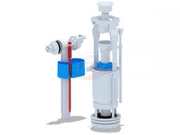 Набор для бачка унитаза. Наливной механизм с боковой подводкой и пластиковой резьбой диаметром 1/2. Сливной механизм белая кнопка с одним режимом слива эконом