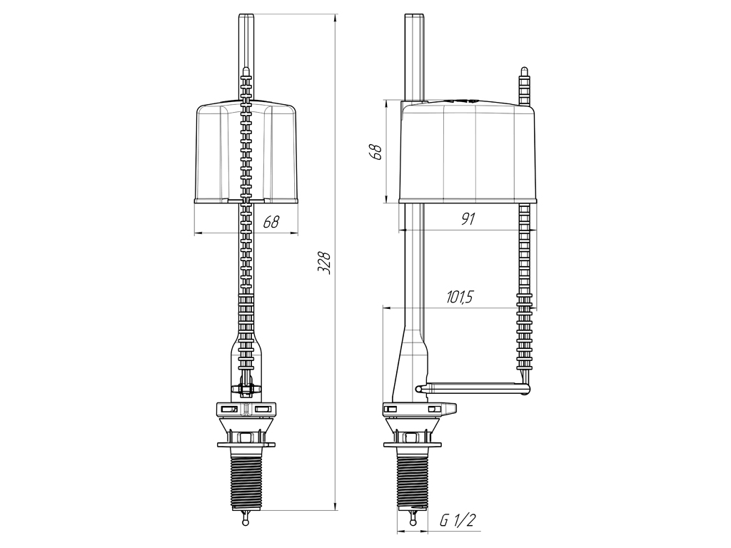 Наливной механизм бачка унитаза с нижней подводкой и пластиковой резьбой диаметром 1/2 эконом