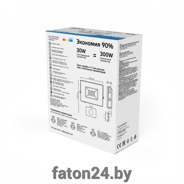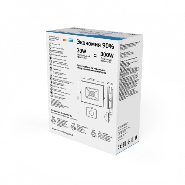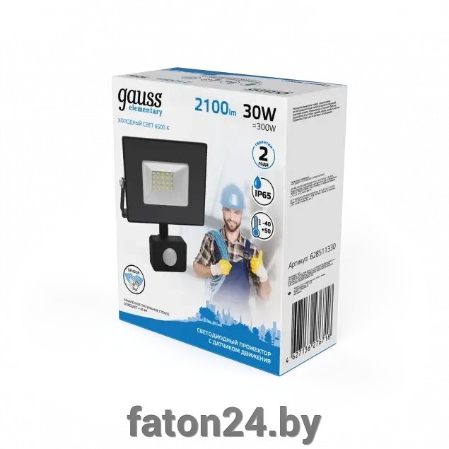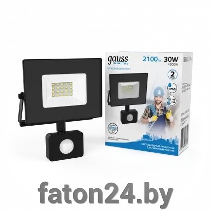 Прожектор Gauss Elementary-S 30W 2100lm 6500К IP65 черный с датчиком движения