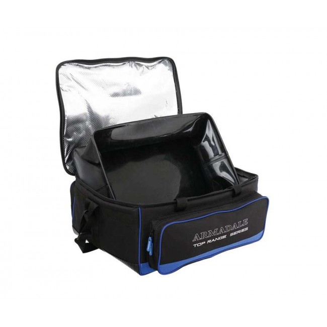 Термосумка Flagman Armadale Cooler Bag Размер: 60x50x25 см. выполнена из качественного, износостойкого материала, закрывается на молнию и оснащена внешним карманом для хранения дополнительных аксессуаров. Предназначена для транспортировки и хранения во время рыбалки скоропортящихся приманок и прикормок, может использоваться для продуктов питания. Для поддержания в сумке низкой температуры есть смысл приобрести хладагент. Стенки имеют вставки из мягкого пористого материала, а внутренняя поверхность отделана металлизированным, отражающим материалам. Благодаря этому сумка отличается великолепными термоизоляционными свойствами. Для удобства транспортировки есть ручки, а также плечевой ремень. В комплекте к ней идет емкость из EVA материала. Емкость не промокает, не впитывает запахи, легко отмывается.артикул - ARMCB