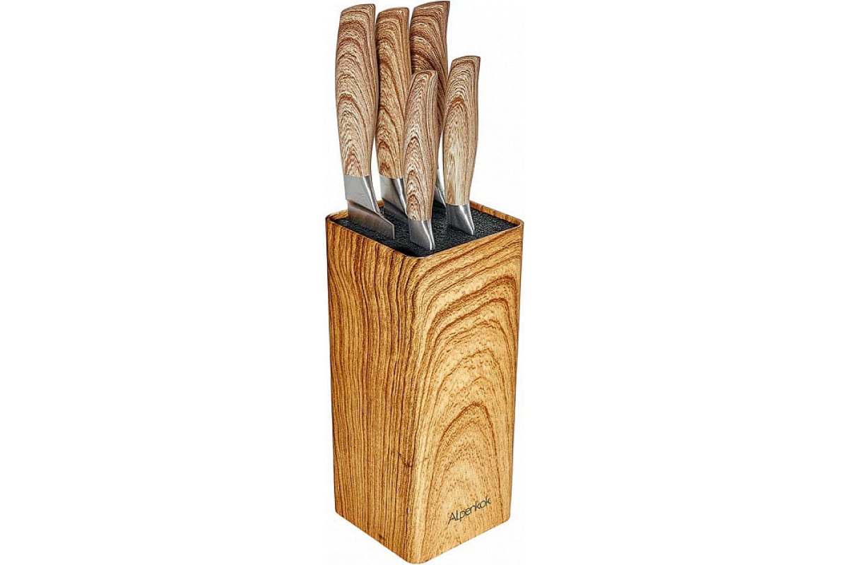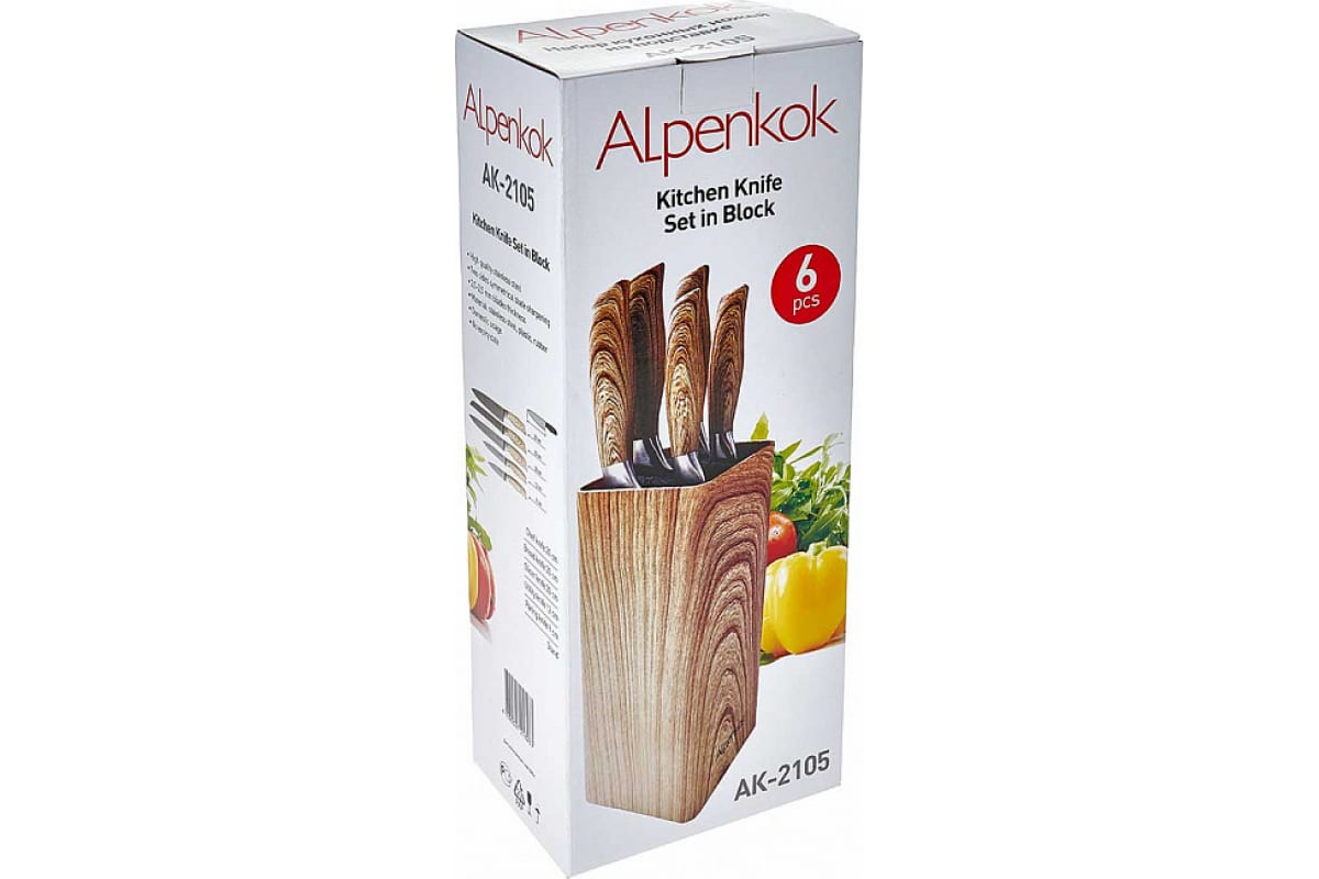 Набор кухонных ножей Alpenkok AK-2105 на подставке, 6 предметов нержавеющая сталь 6 Р1-00006953 предназначен для использования на кухне.
