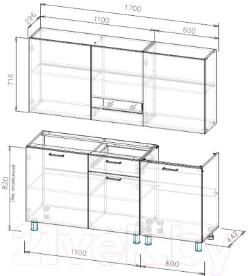 - Высота нижних шкафов 82 см