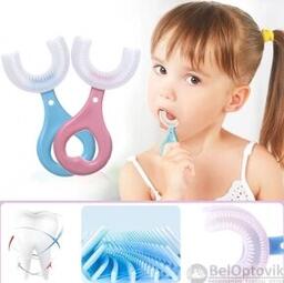 Детская силиконовая зубная U-образная щетка (с 2 до 6 лет) Голубая сердечко (маленькая ручка сердечко)