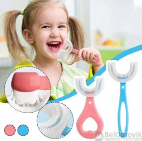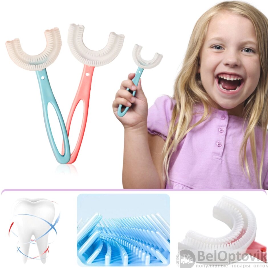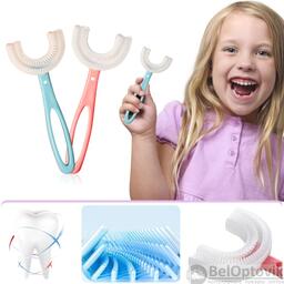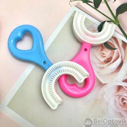 Детская силиконовая зубная U-образная щетка (с 2 до 6 лет) Розовая (длинная ручка овал)