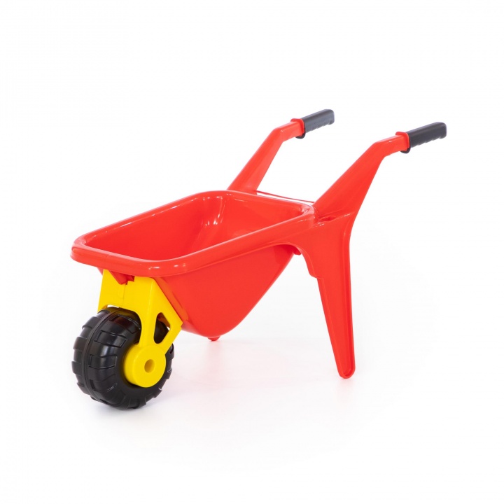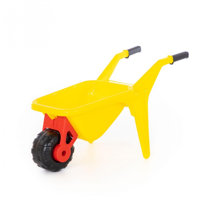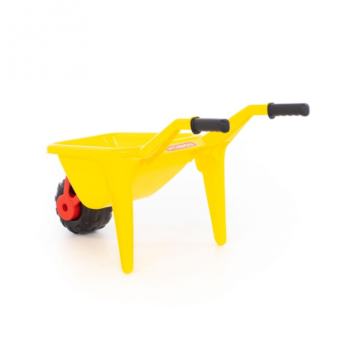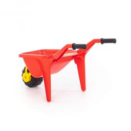 Тачка с 1 колесом изготовлена из высококачественной прочной пластмассы, которая прослужит вашему ребенку долгое время, ей не страшны различные погодные условия и активные детские игры.