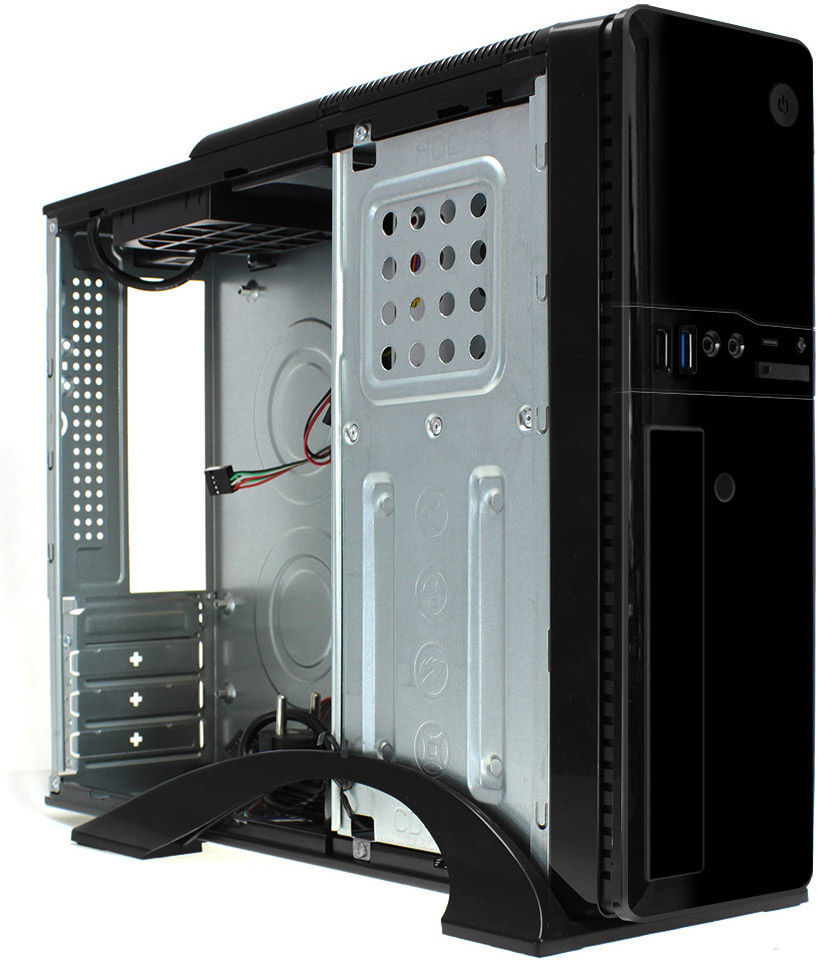 Micro-ATX, блок питания 300 Вт, передняя панель - USB 2.0, выход на наушники, вход микрофонный, кардридер, USB 3.2 Gen 1 (Type-A), встроенные вентиляторы - 1 шт.