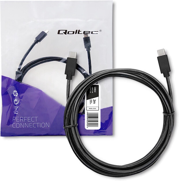 Кабель Qoltec USB-C - USB-C 52345, черный, 2 м