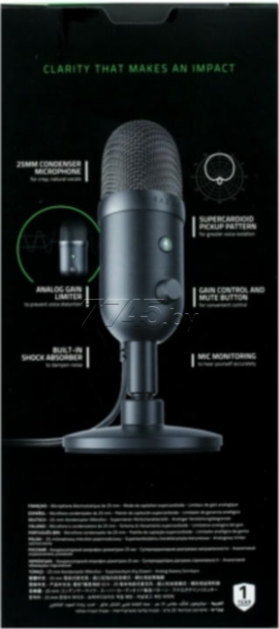 Микрофон RAZER Seiren V2 X (RZ19-04050100-R3M1) – это микрофон, который позволит вам выделиться среди множества других стримеров своим чистым голосом, который будет слышно сквозь шум. USB-микрофон Razer Seiren V2 X станет идеальным дополнением любой компьютерной системы для трансляций. Он оснащен всеми необходимыми техническими решениями, которые позволят вашему голосу поистине зазвучать. Благодаря своей впечатляющей чувствительности этот микрофон способен захватывать ваш голос с высокой точностью (особенно в диапазоне высоких частот), поэтому вы будете звучать для других так же естественно, как и в жизни. Конструкция Razer Seiren V2 X обеспечивает подавление шума сзади и по бокам, поэтому он способен захватывать ваш голос, исключая фоновые звуки, например щелчки клавиш или кнопок мыши. Razer Seiren V2 X запрограммирован так, чтобы автоматически предотвращать клиппинг и достижение аудиосигналом максимальной амплитуды, поэтому вам не нужно волноваться о том, что ваш голос будет искажаться или звучать слишком громко во время трансляций.