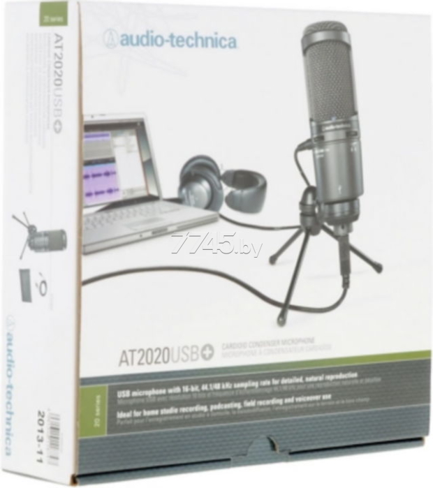 Микрофон AUDIO-TECHNICA AT2020USB+ – это cтудийный конденсаторный микрофон c USB-разъемом. Устройство предназначено для цифровой записи музыки, вокала, закадровых текстов и комментариев, как в студиях, так и вне помещений. Данный микрофон является естественным развитием легендарной модели AT2020 со студийным качеством записи. У Audio-Technica AT2020USB+ есть разъем для подключения наушников с регулятором громкости, что позволяет осуществлять мониторинг сигнала с устройства в реальном времени. Есть также специальная система контроля, которая позволяет смешивать микрофонный сигнал и уже записанный. Кардиоидная направленность микрофона Audio-Technica AT2020USB+ отлично устраняет посторонние шумы, а точную передачу звука обеспечивает АЦП с параметрами 16 бит/48 кГц.