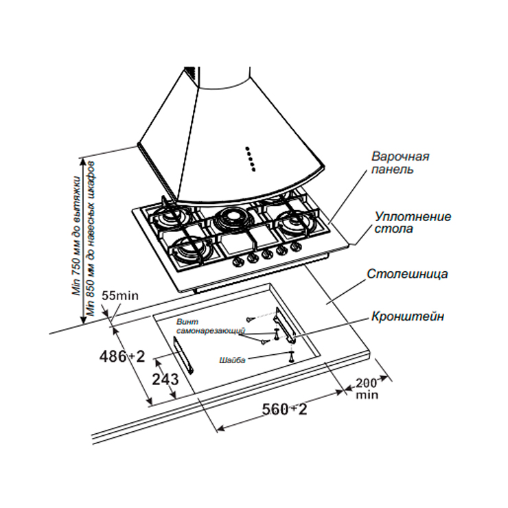 - Размеры ниши для встраивания (В*Ш*Г) х56х48.6
