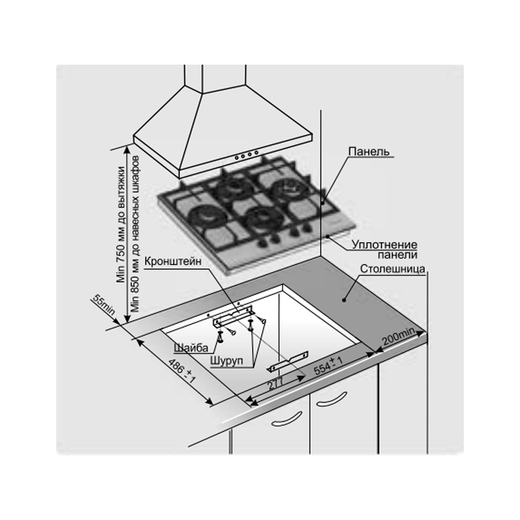 - Размеры ниши для встраивания (В*Ш*Г) х55.4х48.6