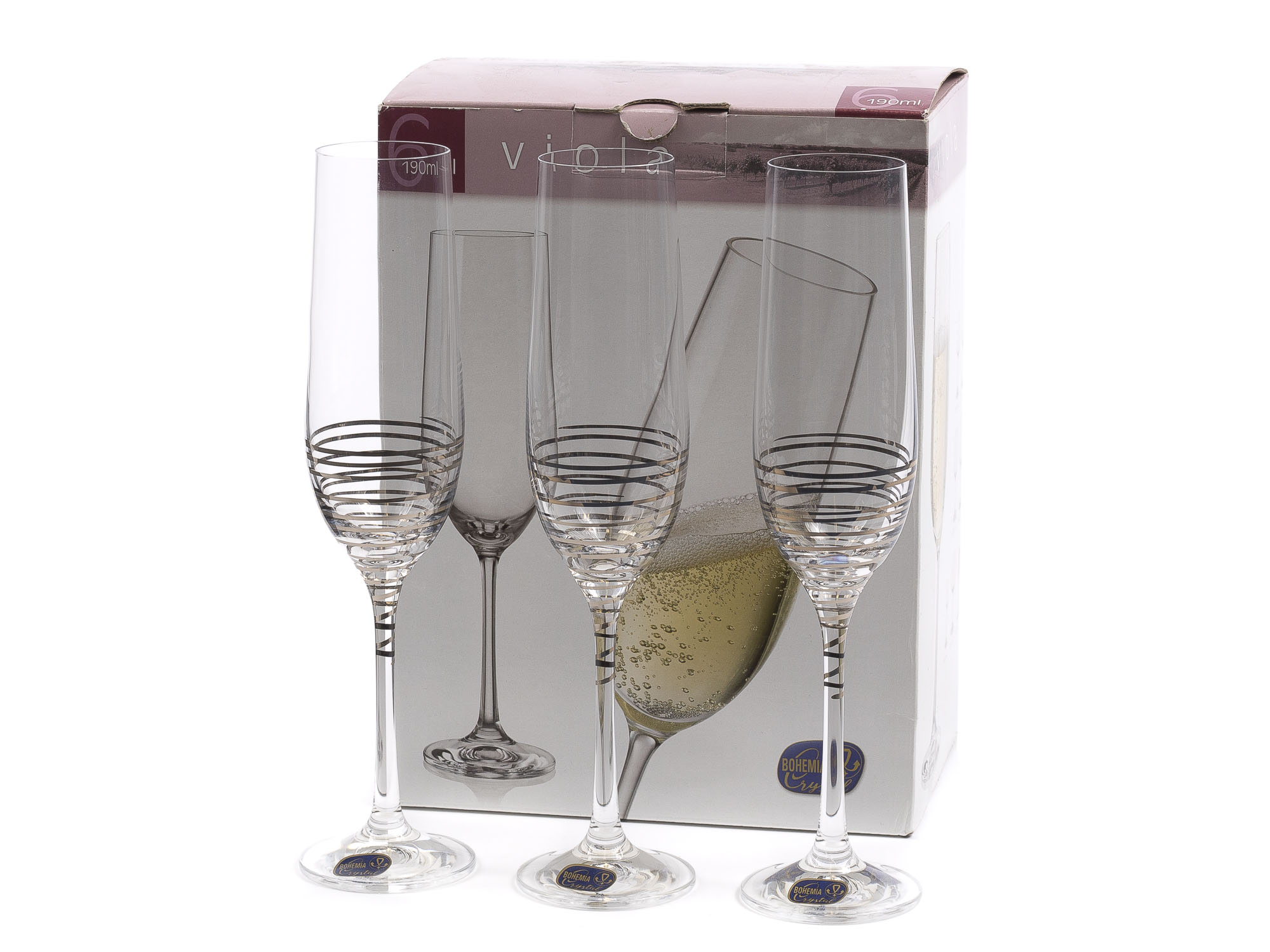 НАБОР БОКАЛОВ ДЛЯ ШАМПАНСКОГО стеклянных декор. “Viola” 6 шт. 190 мл (арт. 40729/M8434/190) 81683