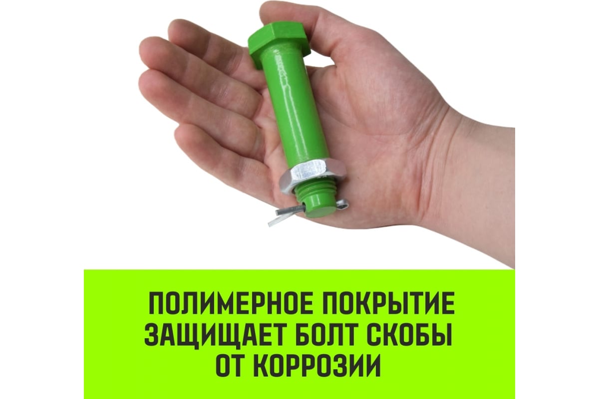 Скоба изготовлена из технологичной легированной стали 8-го класса и имеет коэффициент запаса прочности 4. Технология горячего цинкования защищает от коррозии. Изделие производится без применения сварки. Болт скобы имеет полимерное покрытие. Скобы прямые HITCH G2150 со шплинтом выпускаются в соответствии с DIN EN G2150 .