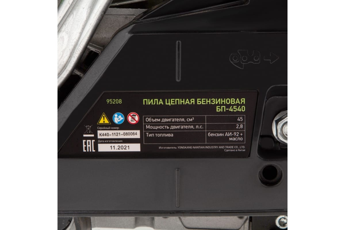 Мощный и экономичный двигатель в сочетании с качественной шиной длиной 40 см (цепь с 64 звеньями с шагом 0.325 дюйма и шириной паза 1.5 мм) позволяют достичь наилучших результатов в работе.