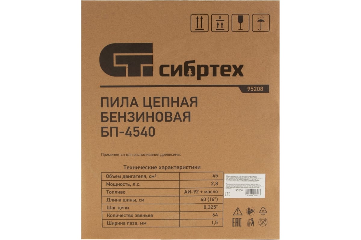Цепная бензиновая пила СИБРТЕХ БП-4540 95208