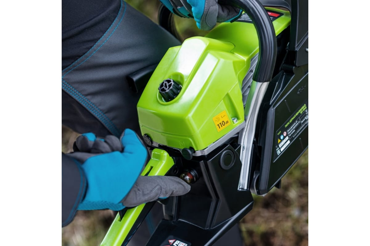 Мощный и экономичный двигатель в сочетании с качественной шиной длиной 45 см (цепь с 72 звеньями с шагом 0.325 дюйма и шириной паза 1.5 мм) позволяют достичь наилучших результатов в работе.