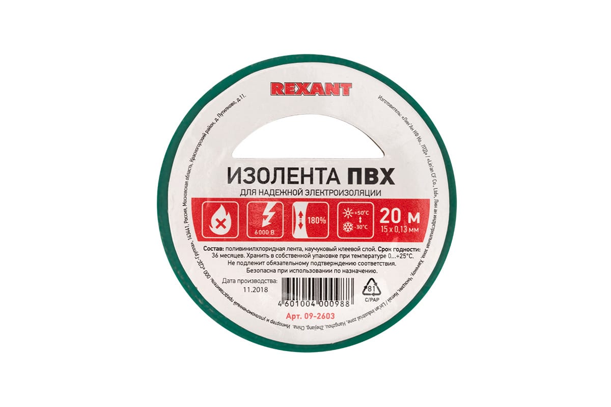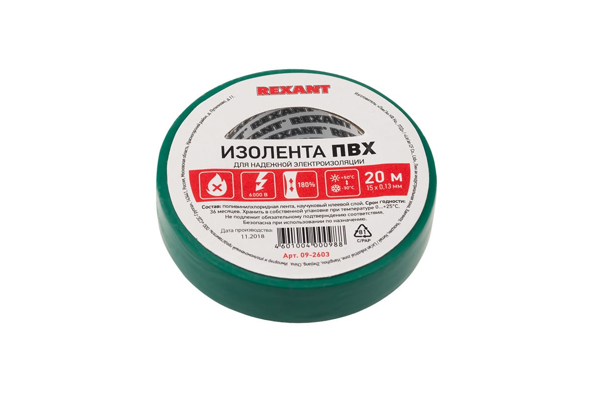 Изолента REXANT 15мм х 20м зеленая 09-2603
