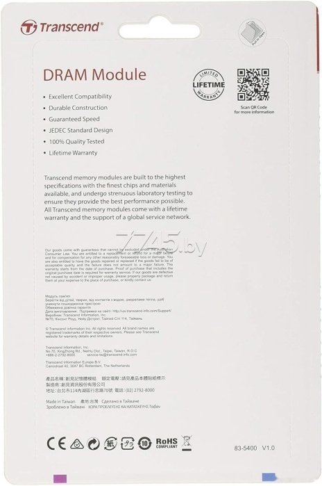 Оперативная память TRANSCEND JetRam 32GB DDR4 PC4-25600