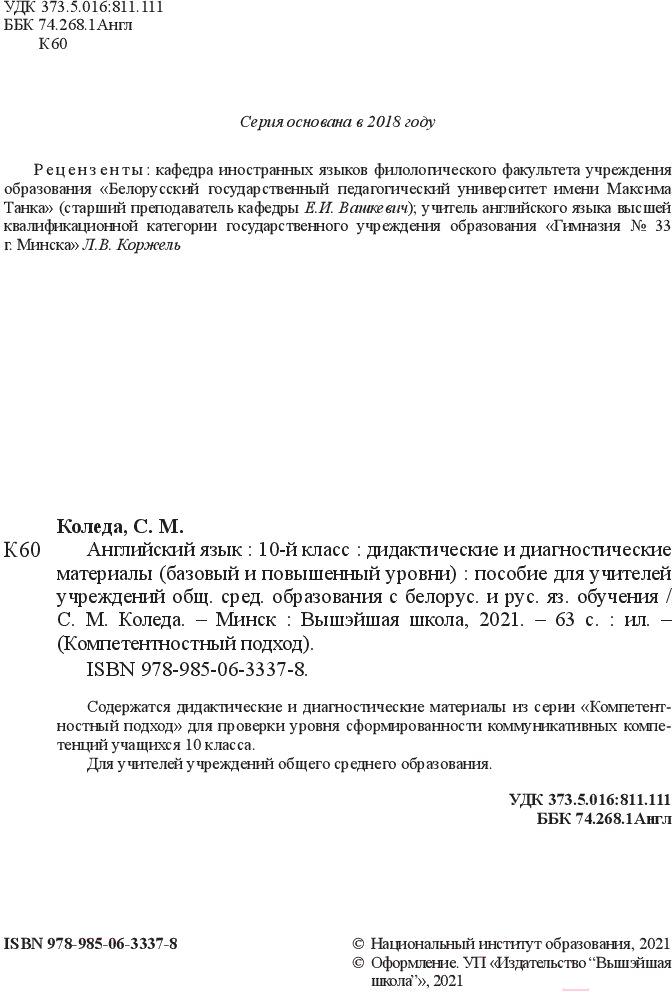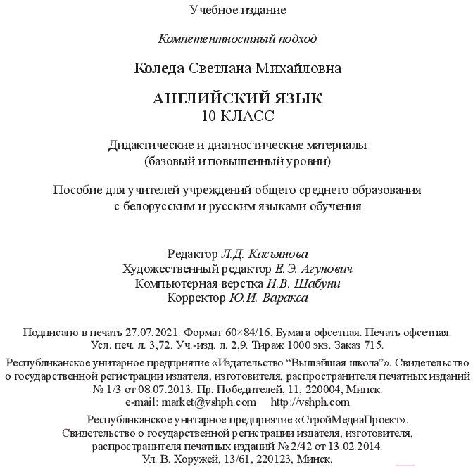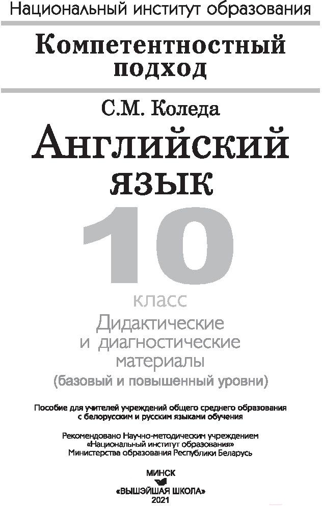 Учебное пособие Вышэйшая школа Английский язык 10 класс. Дидактические материалы (Коледа С.)