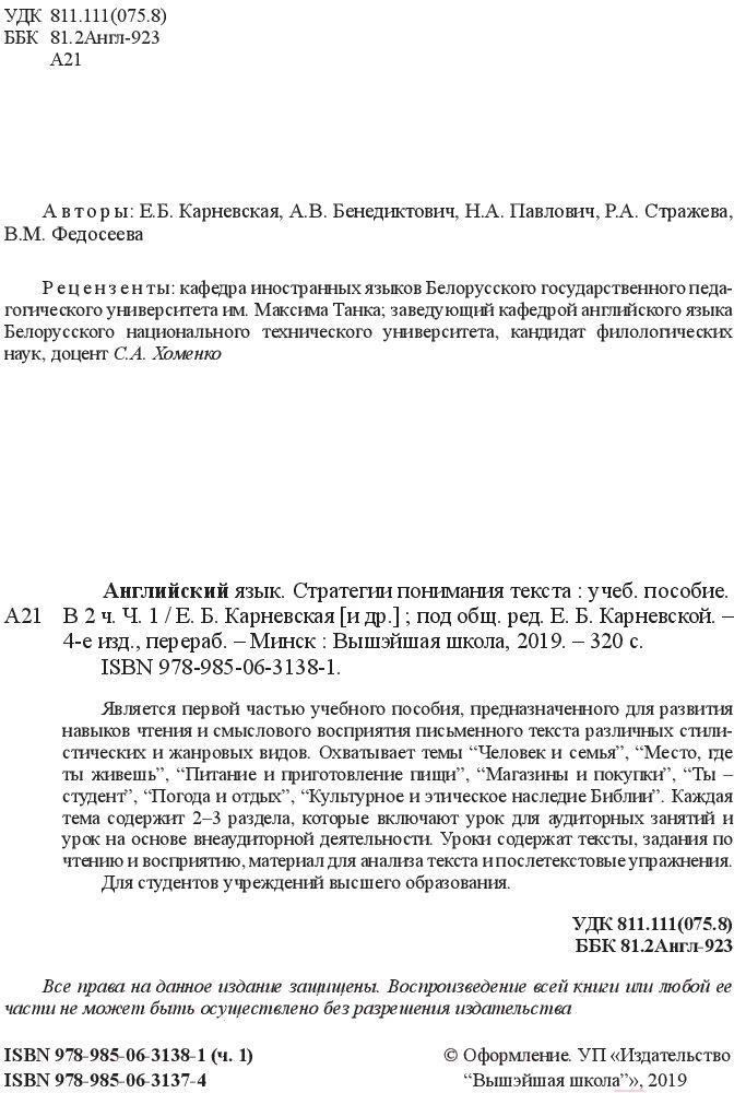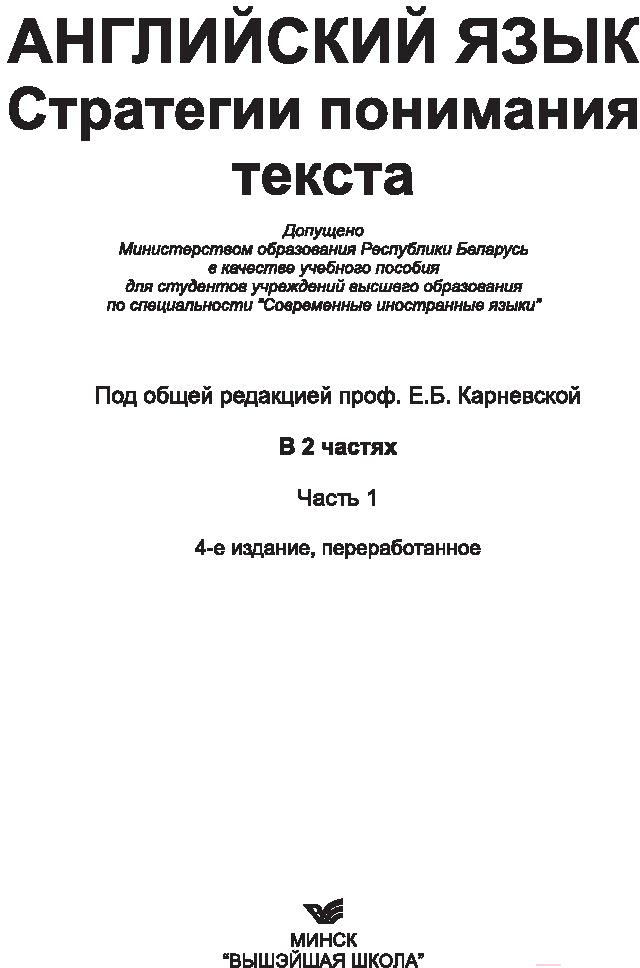 Учебное пособие Вышэйшая школа Английский язык. Стратегии понимания текста (Карневская Е.)
