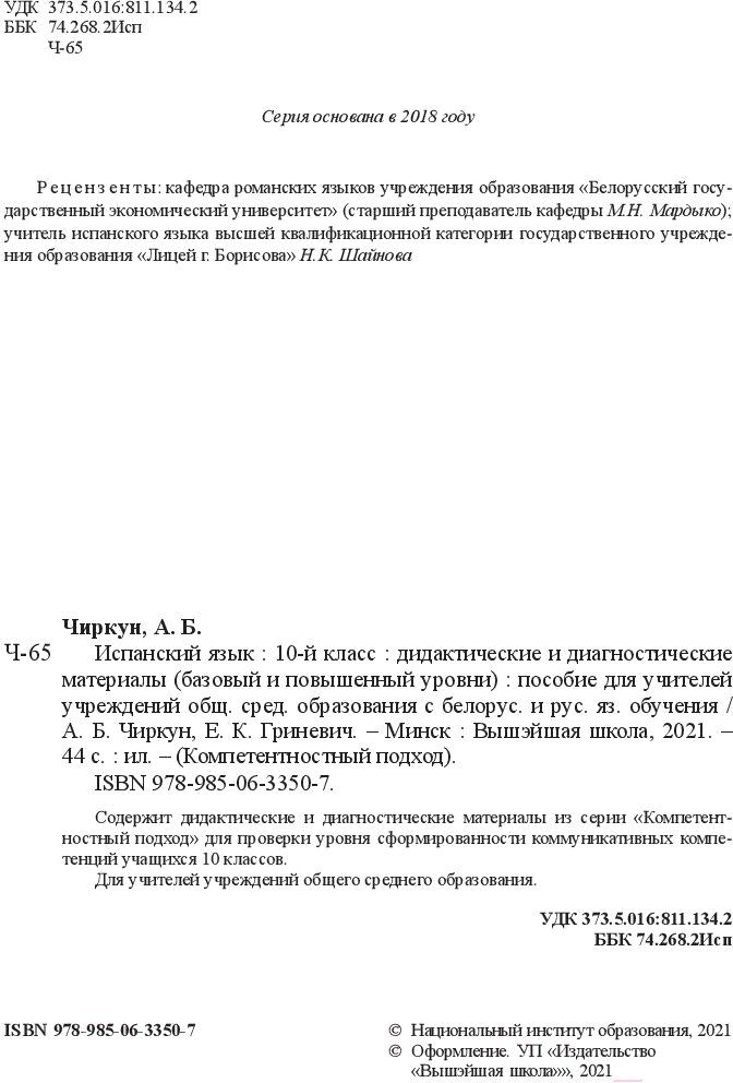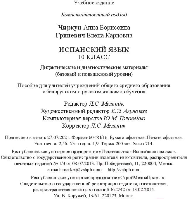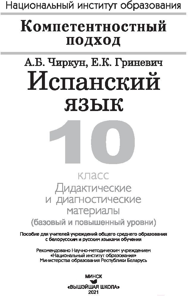 Учебное пособие Вышэйшая школа Испанский язык. 10 класс. Дидактические материалы (Чиркун А.)