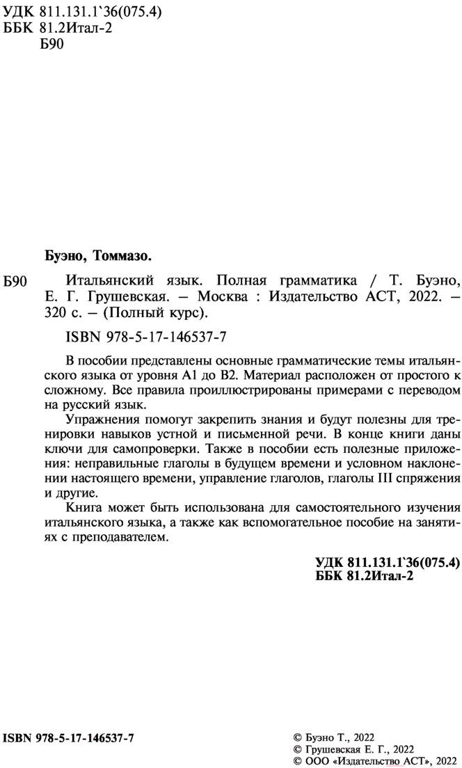 Учебное пособие АСТ Итальянский язык. Полная грамматика (Буэно Т.)