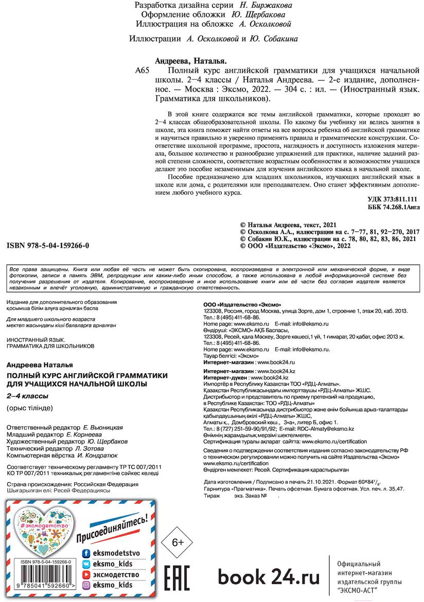 Учебное пособие Эксмо Полный курс английской грамматики для учащихся начальной школы